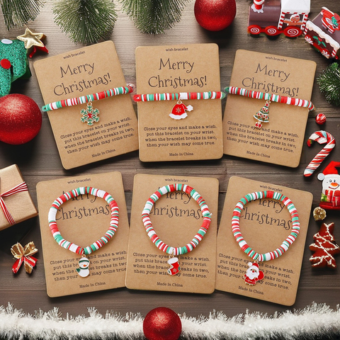Youlun Bán Buôn Hot Bán Vui Vẻ Món Quà Giáng Sinh Santa Bông Tuyết Xmas Hat Tree Mặt Dây Chuyền Vòng Đeo Tay Với Thiệp Chúc Mừng Màu Nâu